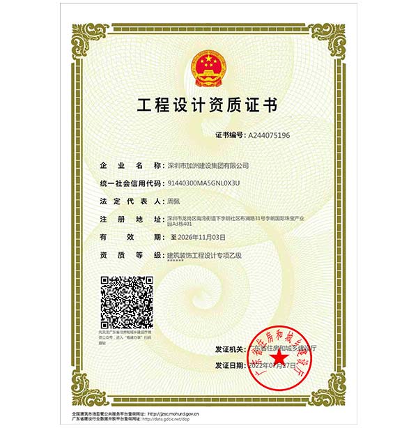深圳市加洲建設集團有限公司,專注于深圳辦公室裝修、深圳辦公室設計、深圳寫字樓裝修、深圳寫字樓設計,是經國家住房與城鄉建設部批準的裝飾施工一級總承包,設計乙級資質的深圳辦公室裝修設計企業。公司作為精品建筑全程控制設計的實踐者,積極嘗試從項目策劃、建筑設計、室內設計、景觀設計、項目管理和施工監造等各個環節對項目營建的全過程提供設計控制和服務支持。